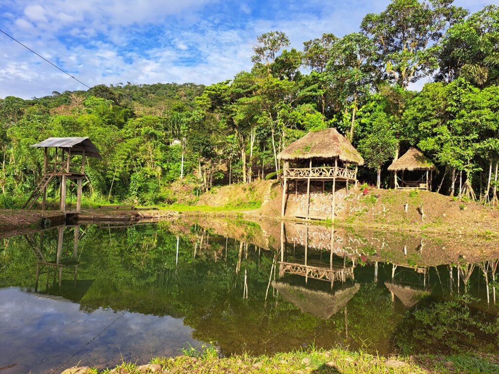 Si una tarde no es suficiente, puedes quedarte en sus cabañas tradicionales construidas con madera y paja toquilla, o si prefieres una experiencia más aventurera, cuentan con una zona segura para camping.